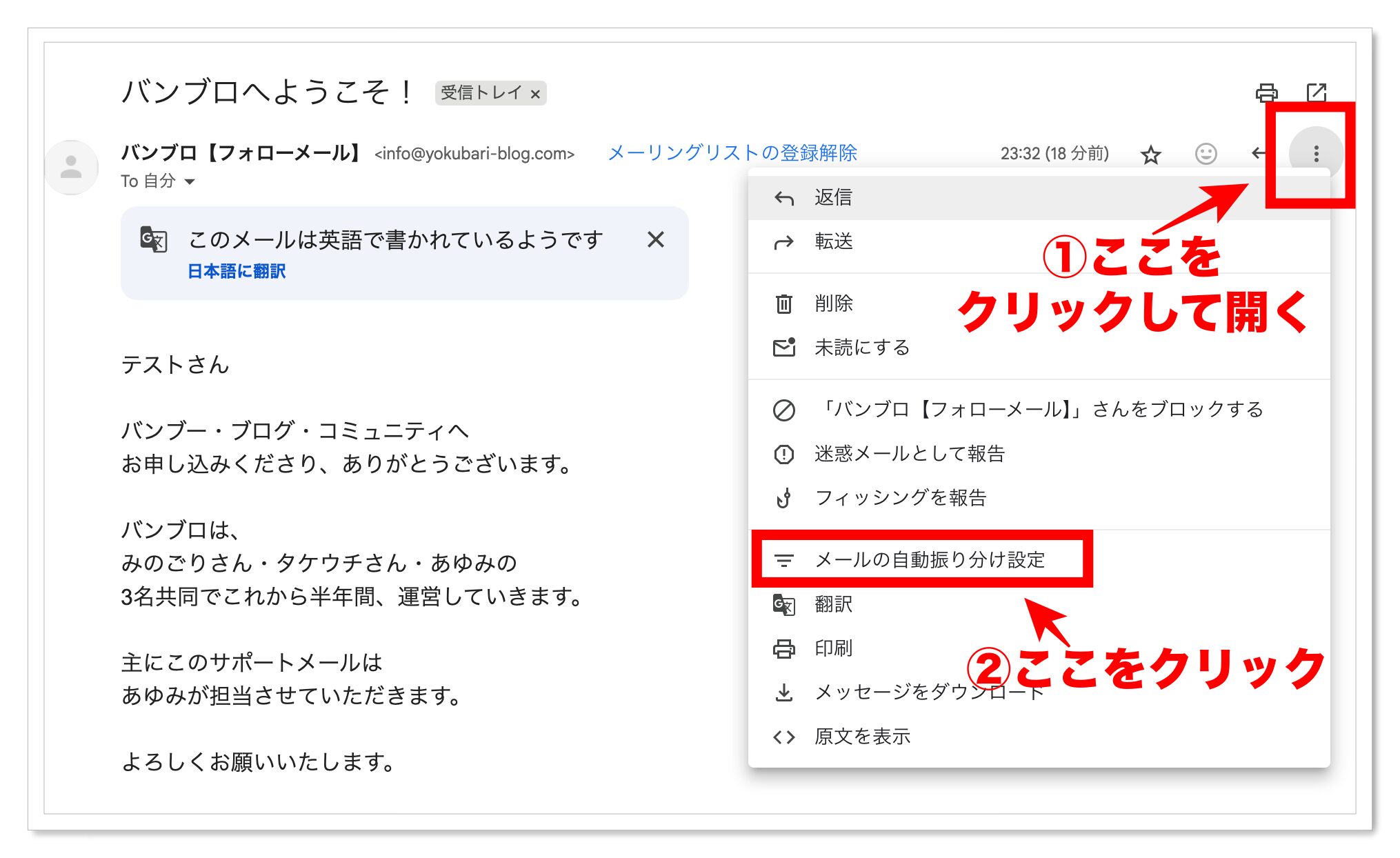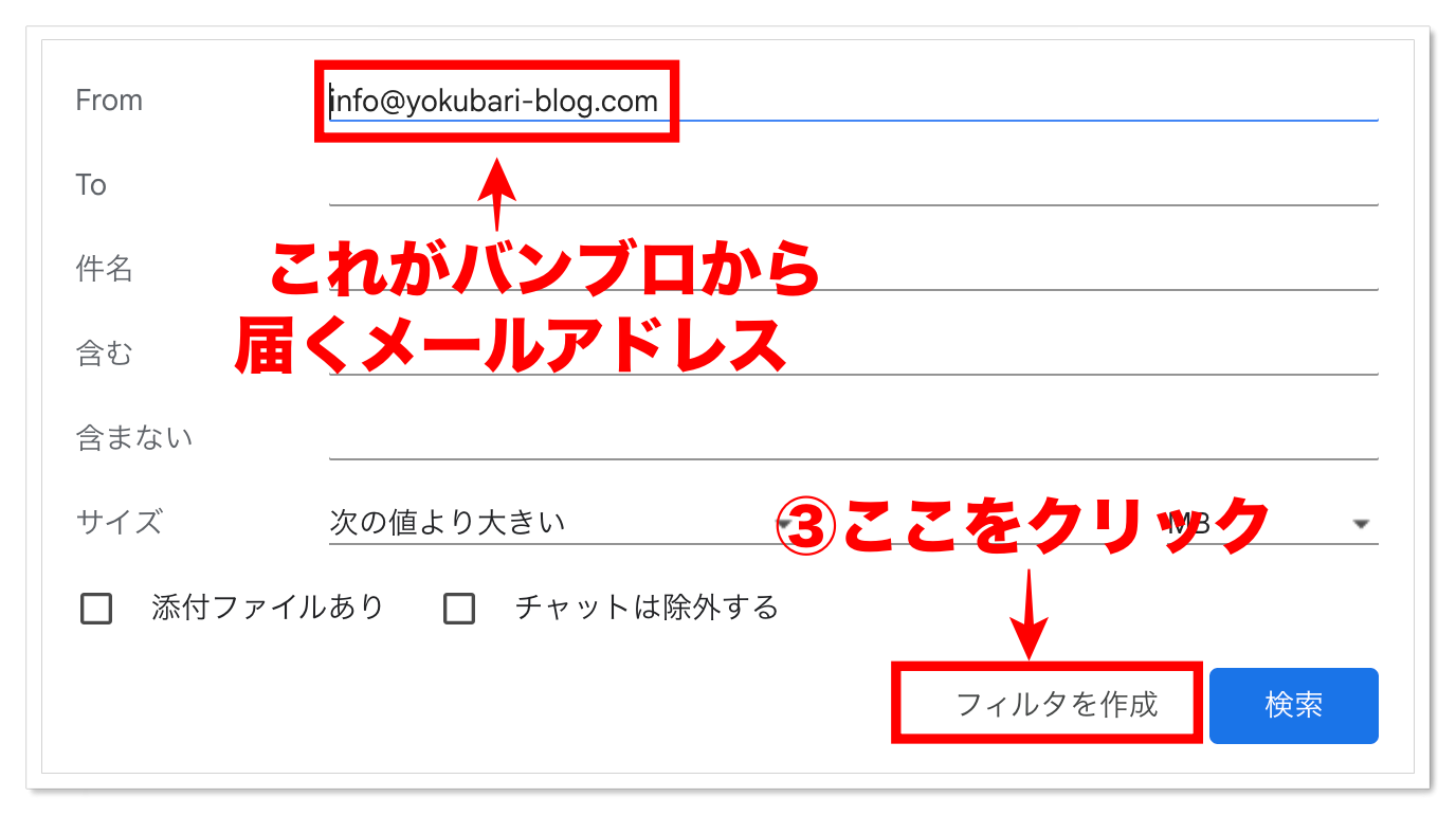 バンブロから届くこのメール(info@yokubari-blog.com)が迷惑メールと判断されないように設定をしていきたいので、